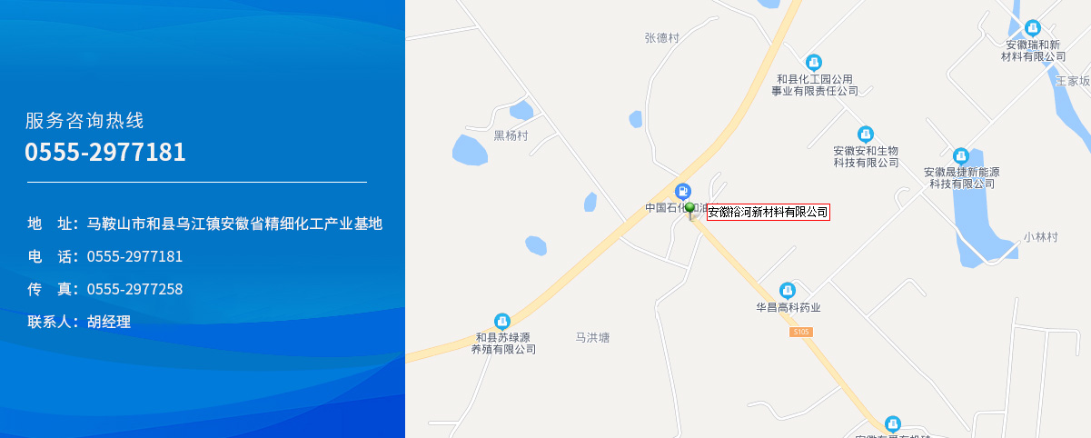 地址:安徽省馬鞍山市和縣烏江鎮(zhèn)安徽省精細化工產業(yè)基地 電話:0555-2977181 手機:187-0551-7353/胡經理